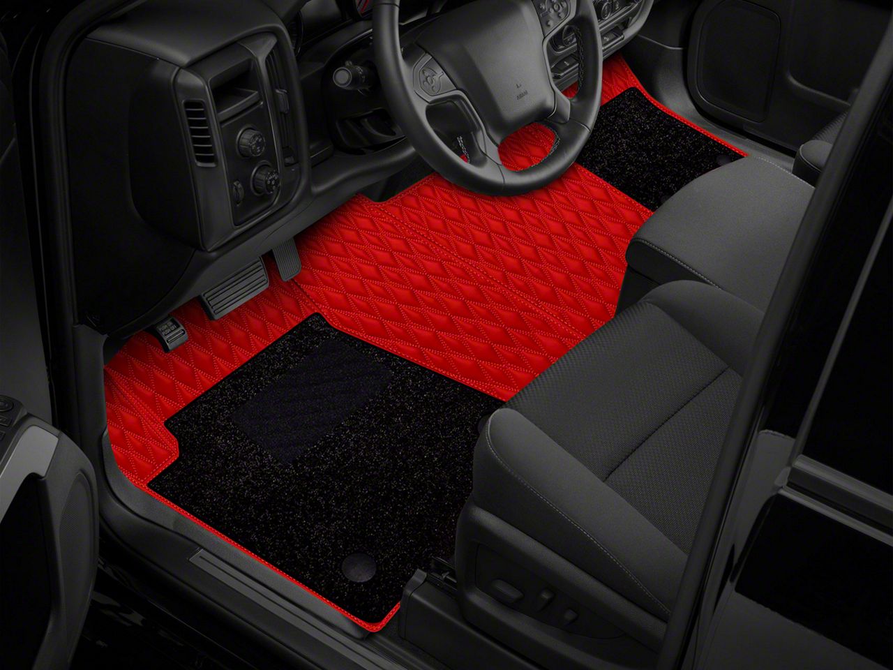 Eco-Friendly Anti-Slip Floor Mats. Enhance the interior of your RAM 1500 Quad Cab with Front Bench Seat using the striking Double Layer Diamond Front and Rear Floor Mats, featuring a unique base layer in full red and a top layer in sleek black. These mats are not just about looks; their 3D molded design with raised edges effectively contains spills and debris, protecting your vehicle's flooring from damage.