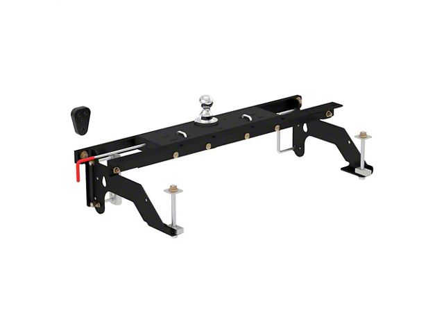 Description. A CURT gooseneck hitch is more than a necessary tool for towing; it is an integrated extension of your truck that allows you turn your 4x4 into the workhorse it was designed to be. That is why CURT offers gooseneck hitch kits that include both the hitch and the installation brackets, making it simpler and easier to get your truck towing-ready. This kit includes the CURT Double Lock gooseneck hitch and installation brackets to match. The under-bed Double Lock gooseneck hitch gets its name from the two locking pins that engage the trailer ball and hold it in place, giving you twice the security when towing especially heavy trailers. The Double Lock mounts underneath your truck bed, using the included brackets, and provides a removable 2 5/16" gooseneck trailer ball with a gross trailer weight capacity up to 30,000 lbs. and a tongue weight capacity of 7,500 lbs. Using the heavy-duty operating handle, the trailer ball can be unlocked and flipped over whenever necessary to allow full use of the truck bed. The Double Lock comes with solid safety chain hookups, an attractive chrome trim ring, a durable A-coat finish and a limited lifetime warranty. This particular Double Lock gooseneck hitch kit is design to be a custom fit for certain years of the Dodge Ram 1500 (for a complete listing of vehicle and installation bracket compatibility, see application info).