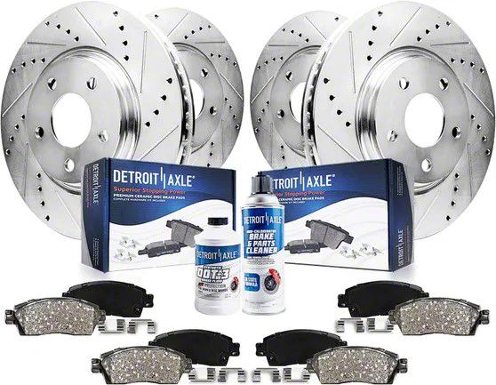 Installation. Putting this Drilled and Slotted 5-Lug Brake Rotor, Pad, Brake Fluid, and Cleaner Kit on your ride is easy and requires no drilling.