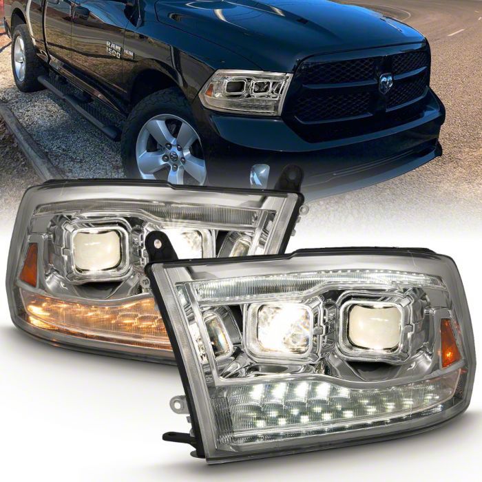 Application. The Dual Switchback Projector Headlights; Chrome are engineered to be a perfect fit for all 2009-2018 Dodge RAM 1500 models.