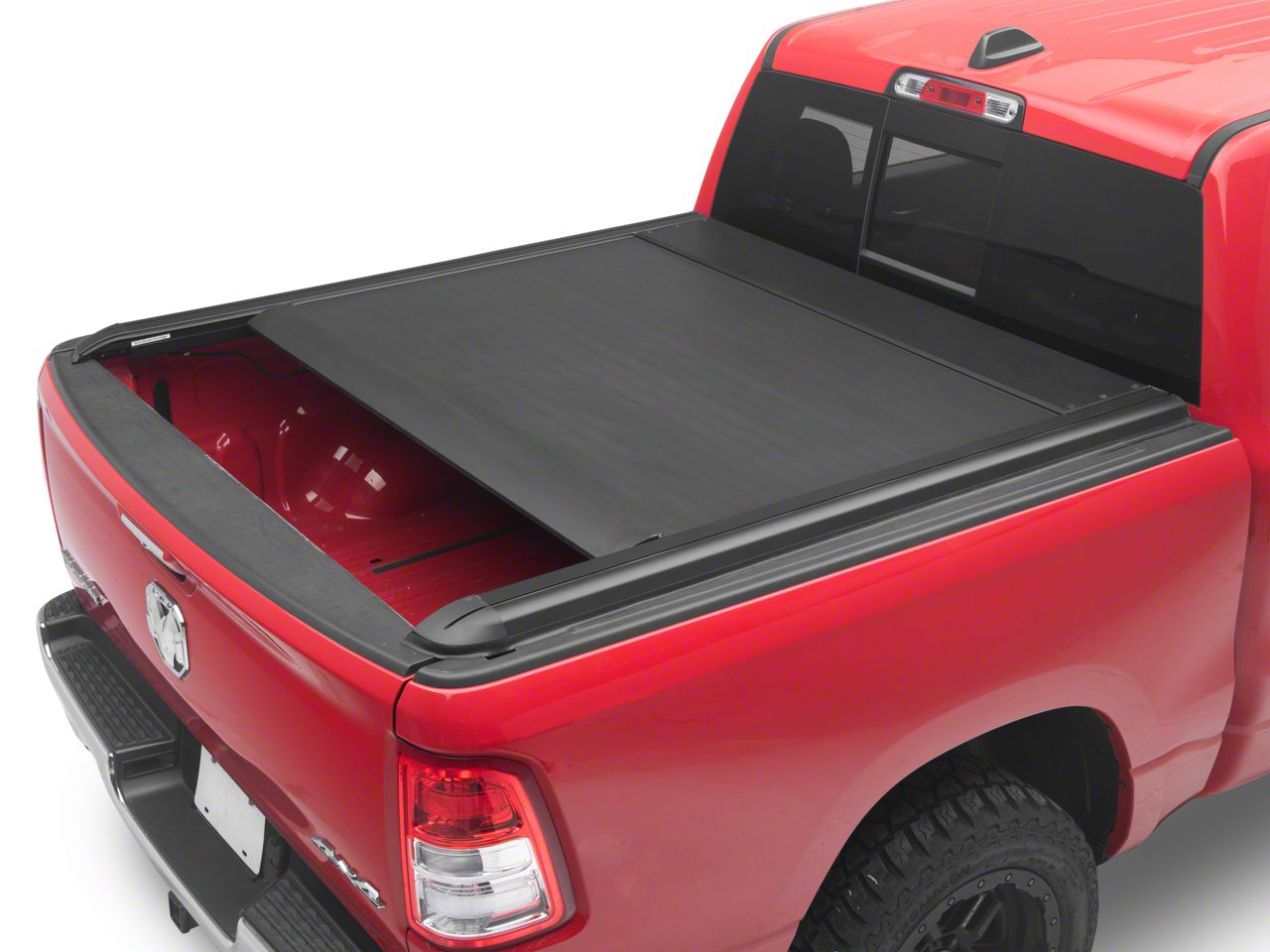 Convenient, Secure Bed Protection. The E-Roller Retractable Tonneau Cover offers quick access to your RAM’s bed while securing cargo under durable aluminum slats that lock in either the open or closed position, guarding against theft and weather.