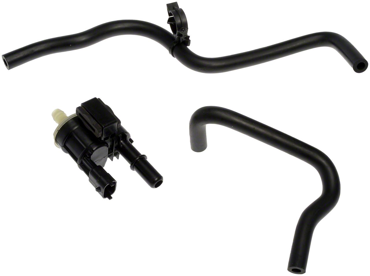 Construction and Appearance. This solenoid is made with high-quality plastic materials to ensure durability and resistance to wear. It has been rigorously tested to provide a long service life while delivering OE-like performance. The included rubber hoses add to the convenience of installation and overall functionality.
