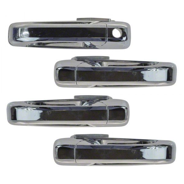 Enhanced Toughness. Enhance your RAM 1500 with a touch of shine and style with these Exterior Door Handles; Front and Rear; Chrome. This set of four door handles, designed for both front and rear doors, provides a distinctive aesthetic upgrade, making your truck stand out in the crowd. Constructed from high-grade materials, these door handles are then finished with a beautiful chrome coating, resulting in a lustrous and durable surface that withstands the tests of time, weather, and frequent use.