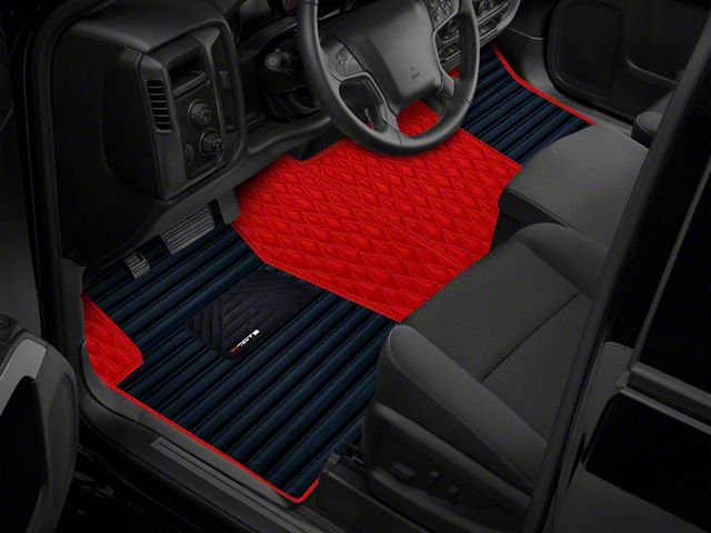 F1 Hybrid Front and Rear Floor Mats; Full Red (19-24 RAM 1500 Quad Cab w/ Front Bench Seat & Rear Underseat Storage)Find parts that fit my vehicle