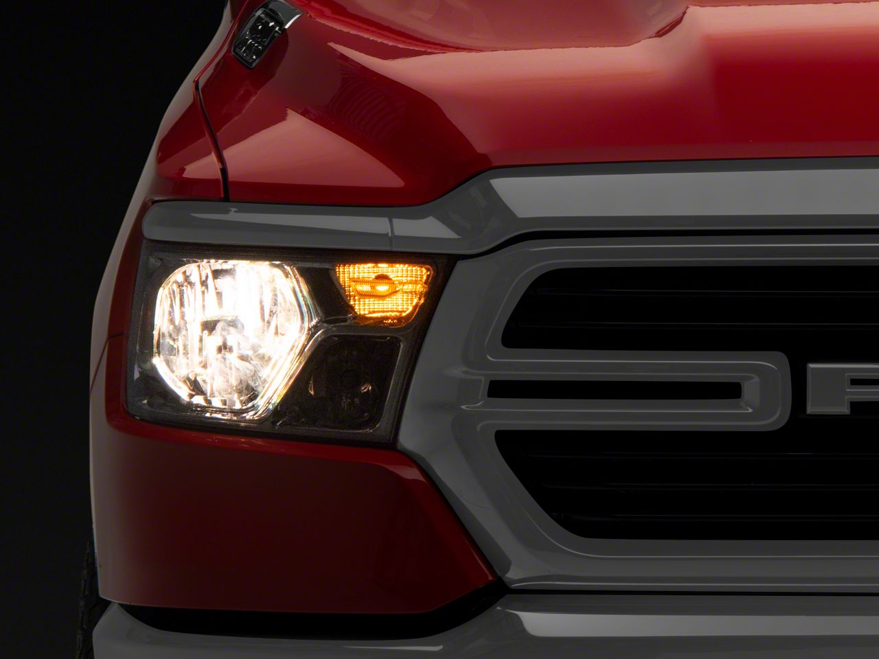 Application. The Factory Style Headlights with Amber Reflectors; Chrome Housing; Clear Lens fits 2019-2024 RAM 1500 with Factory Halogen Headlights.