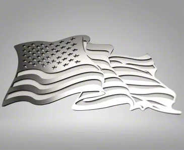Symbol of Patriotism. This Flowing American Flag Emblem proudly displays the American flag in a dynamic, flowing design, adding a patriotic touch to any vehicle. The stainless steel construction ensures long-lasting durability and resistance to the elements.
