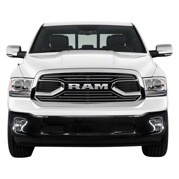 Application. This Front Bumper Cover with Fog Light Openings; Not Pre-Drilled for Front Parking Sensors; Gloss Black fits all 2013-2018 Dodge RAM 1500 models, Excluding Express, Rebel & Sport models.