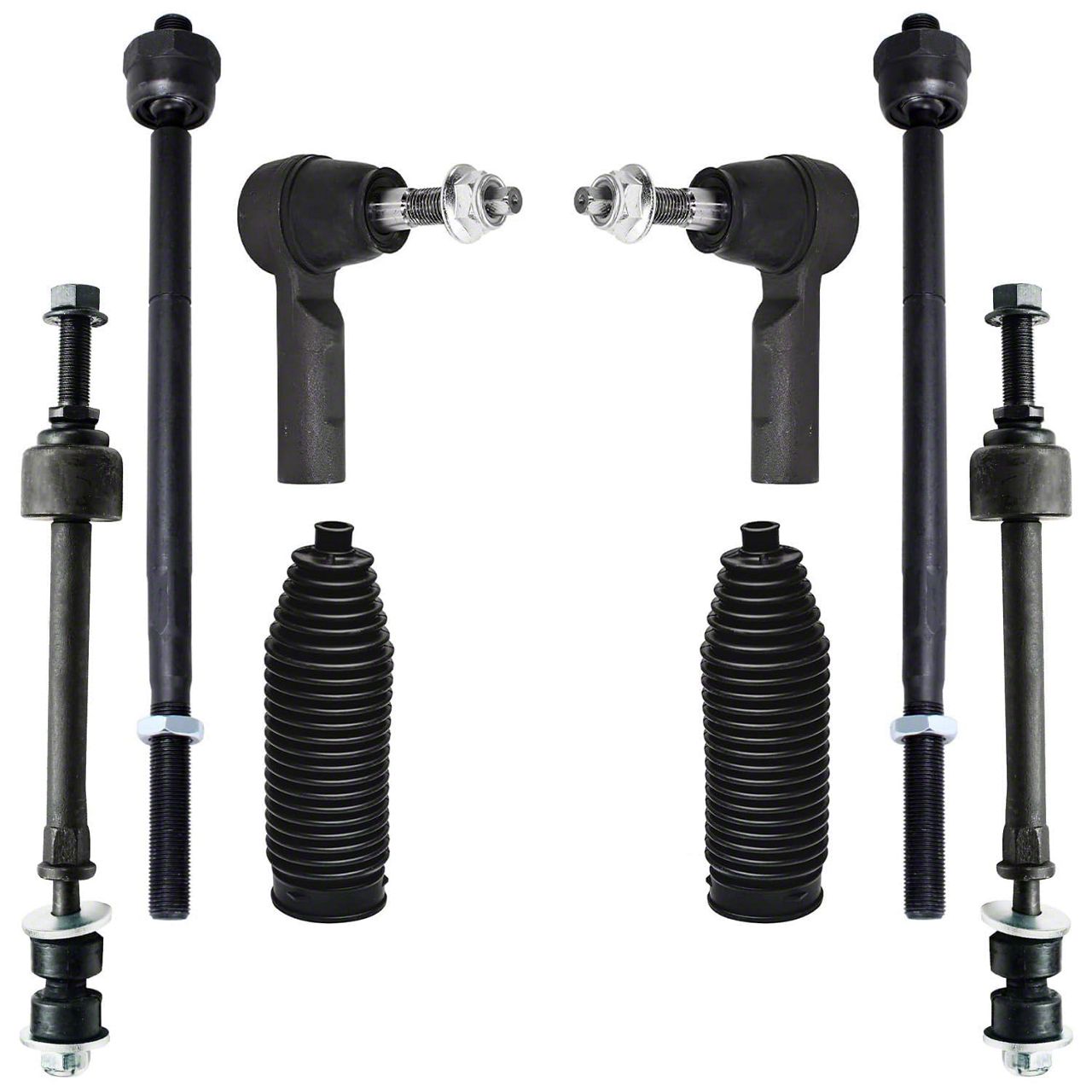 Kit Includes: (2) Front Inner Tie Rod + (2) Front Outer Tie Rod + (2) Front Sway Bar Link + (2) Rack and Pinion Boot