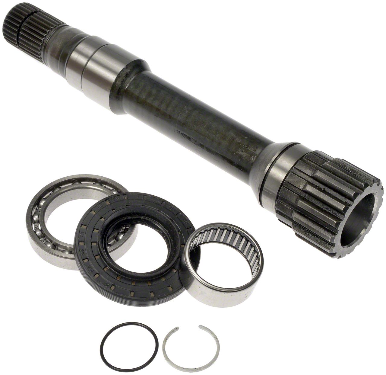 Performance and Durability. Upgrade your vehicle's front axle with the Front Intermediate Axle Shaft (Outer Passenger Side). Crafted from durable Chromoly steel, this assembly is built to last, ensuring long-lasting performance. It is the perfect replacement for your damaged or worn-out part, delivering reliability and peace of mind.
