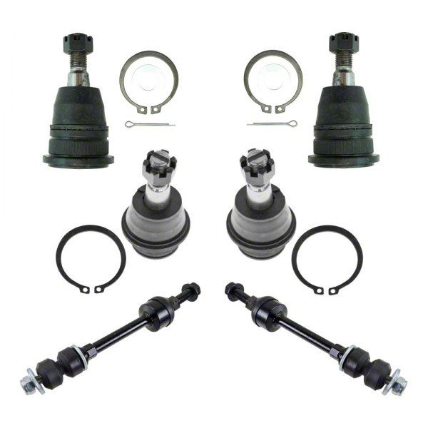 Installation. Installation requires moderate mechanical skill and no drilling is needed, as all components are designed for a direct fit. Replacing the kit components together ensures restored performance and improved road handling.
