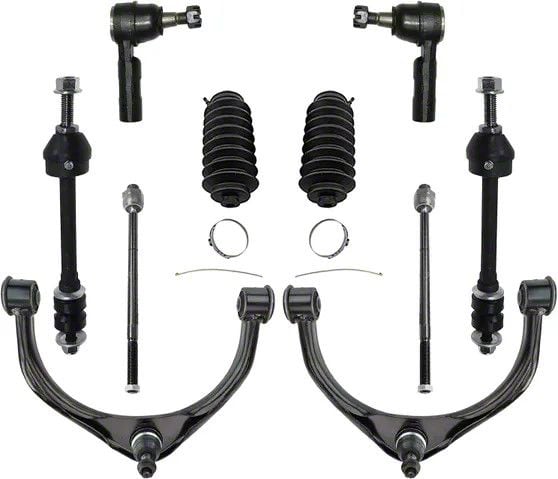 Top-Notch Performance and Comfort. Level up your vehicle's suspension and steering with our Front Upper Control Arms, Tie Rods, and Sway Bar Links set. This 10-piece ensemble ensures your ride remains in top-notch condition, delivering restored suspension and steering functionality. Experience a smoother, more responsive, and efficient performance on the road.