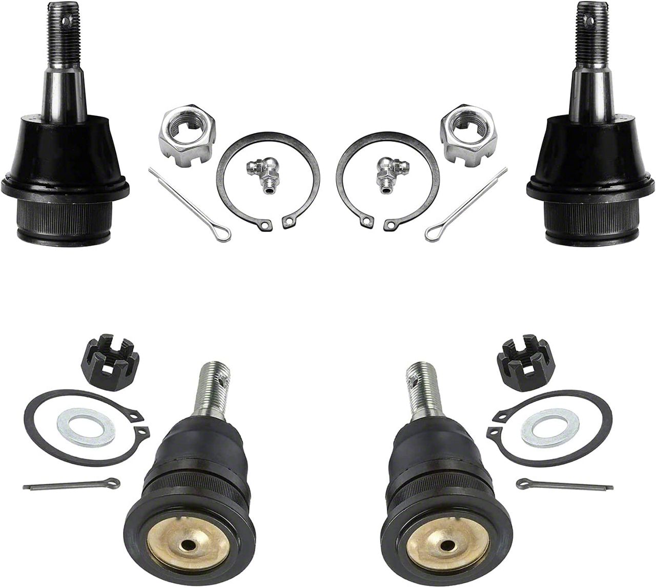 Kit Includes: (2) Front Upper Ball Joint + (2) Front Lower Ball Joint