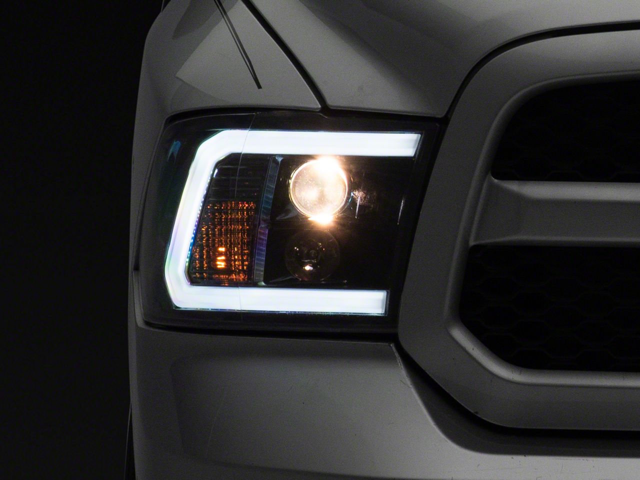 Application. These Gloss Black Projector Headlights with Light Bar DRL are intended for use on 2009-2018 RAM 1500 Models without Projector Headlights.