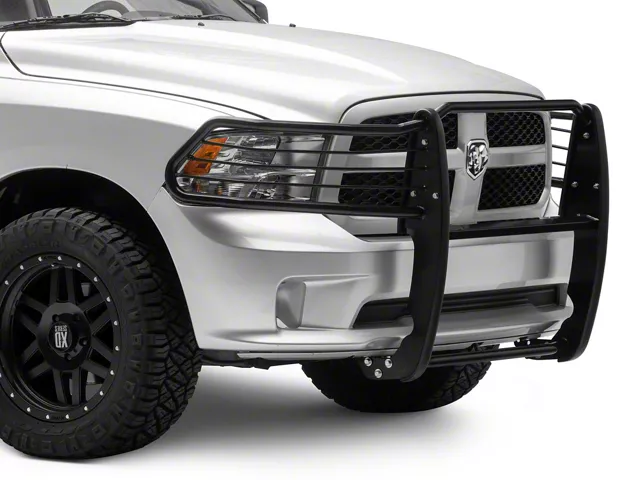 Intense Front Guarding. This bumper-bolted Grille Guard will keep your Dodge RAM safe on the road. Heavy-duty components are used to provide resistance to minor impacts and low-hanging detritus.