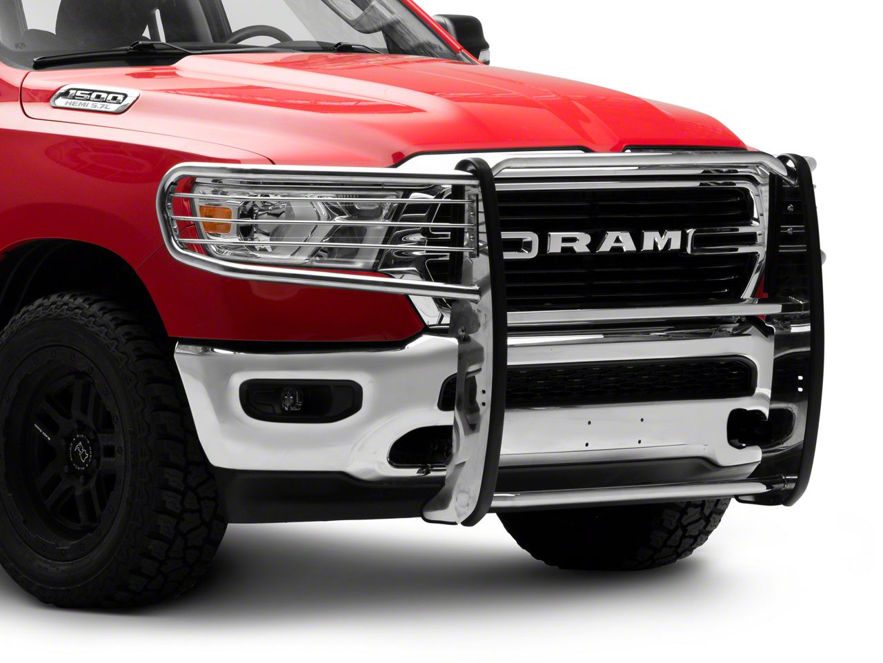 Sleek and Functional Front End Protection. Level up your RAM 1500’s front-end protection while also leveling up its style with this Grille Guard in Stainless Steel. This grille guard combines a form-fitting design with stainless steel construction to give your front end a bold new look. Additionally, this same stainless steel construction offers exceptional protection for your front fascia, including your headlights. Moreover, this assembly’s headlight guards can be removed if you want a more open look for your front end.