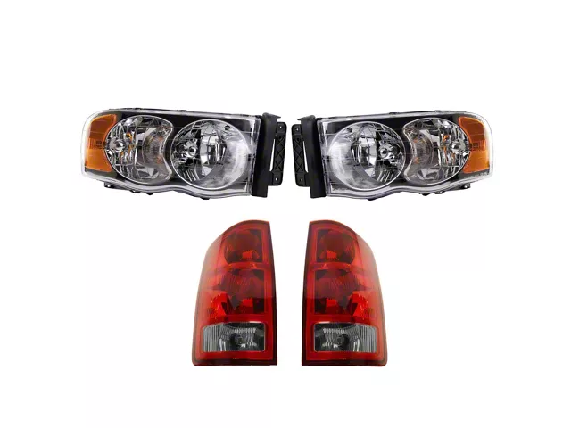 Complete Lighting Solution. This Halogen Headlights and Tail Light Set is a direct replacement for your RAM 1500, restoring both the front and rear lighting to factory performance. The set includes both headlight and tail light assemblies, ensuring maximum visibility and road safety. With high-quality halogen bulbs, these lights provide clear, bright illumination for nighttime driving and adverse weather conditions.