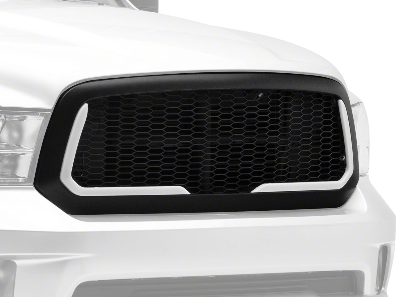 Application. This Honeycomb Mesh Style Upper Replacement Grille with LED DRL Lights in Matte Black fits all 2013-2018 RAM 1500 models, excluding Rebels.