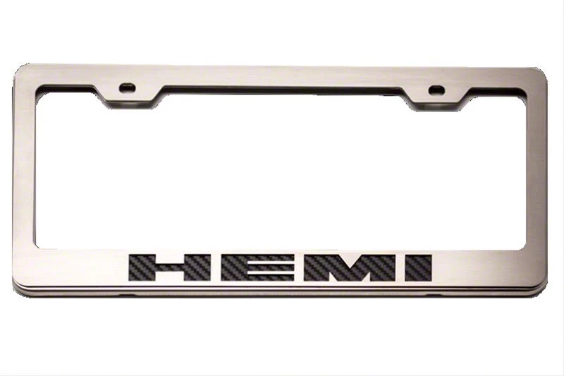 Exterior Styling Upgrade. Upgrade the look of any vehicle with this Illuminated License Plate Frame with Brushed Black HEMI Logo. Made in the USA, this License Plate Frame is manufactured from laser-cut, high-grade stainless steel and is completed with a brushed finish for sophisticated good looks. The illuminated “HEMI” logo will definitely grab everyone's attention.