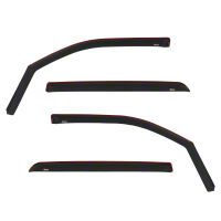Construction and Appearance. Made from durable matte black acrylic, these window deflectors offer a rugged yet stylish addition to your truck. The high-quality material ensures long-lasting performance, resisting cracking, fading, and wear over time.