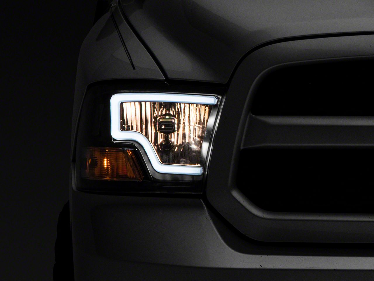 Application. These LED DRL Bar Headlights; Black Housing; Clear Lens are designed to fit 2009-2018 RAM 1500 models without Projector Headlights. Driver and passenger side lights are included.