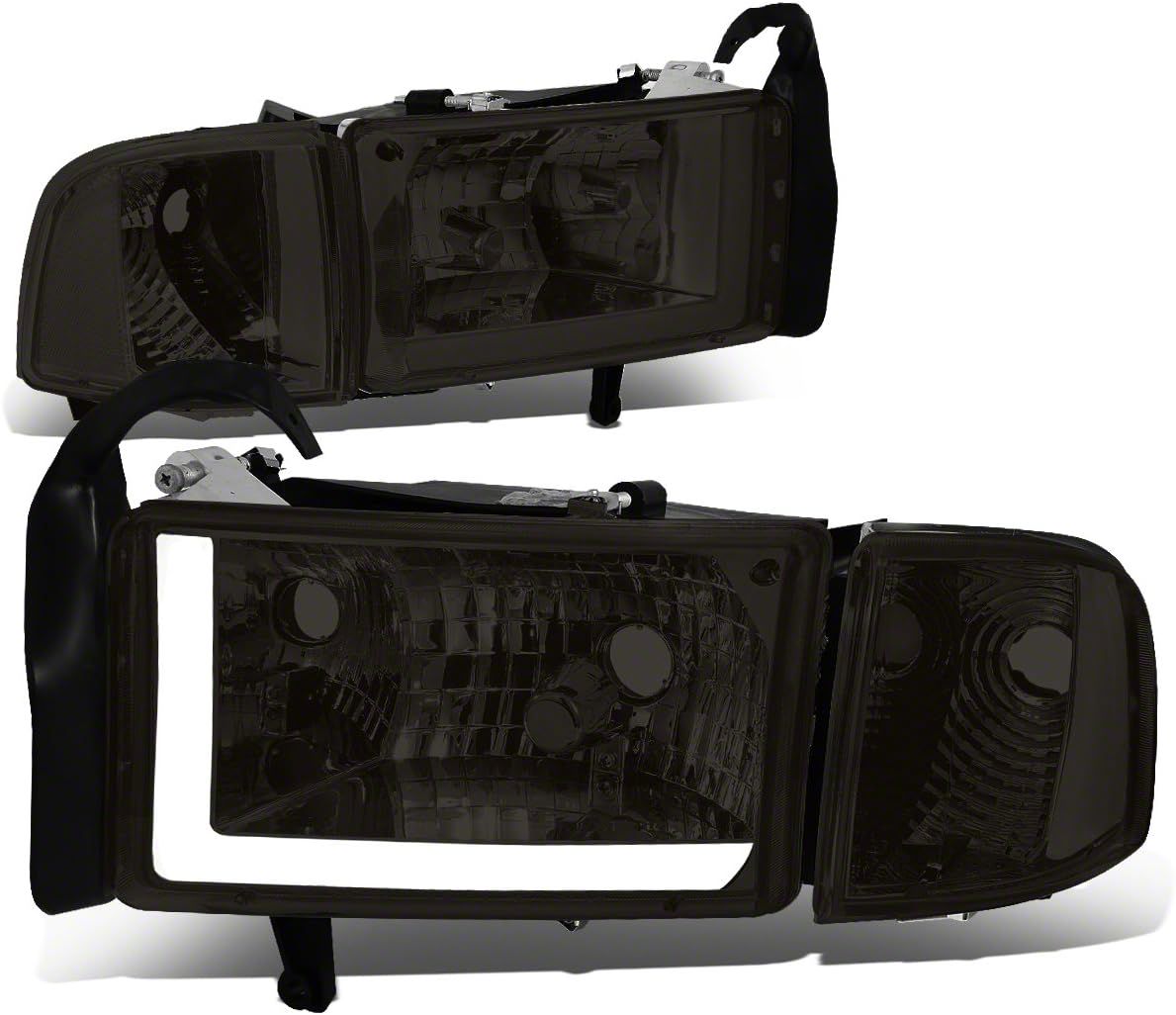 Construction and Appearance. Featuring a smoke housing with a clear lens, these headlights deliver a bold yet refined look. The LED DRLs ensure bright, efficient illumination while the clear corners update the vehicle's front-end styling. Built for durability, they resist weather and wear for long-lasting performance.
