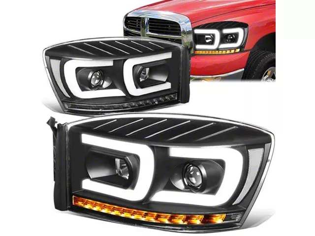 Application. These Dual LED DRL Projector Headlights with Clear Corner Lights; Black Housing; Clear Lens fit 2006-2008 Dodge RAM 1500s.