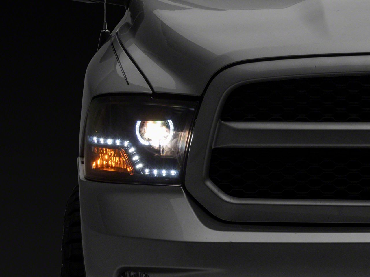 Application. These LED Halo Projector Headlights; Black Housing; Clear Lens are designed to fit 2009-2018 RAM 1500s without Projector Headlights.