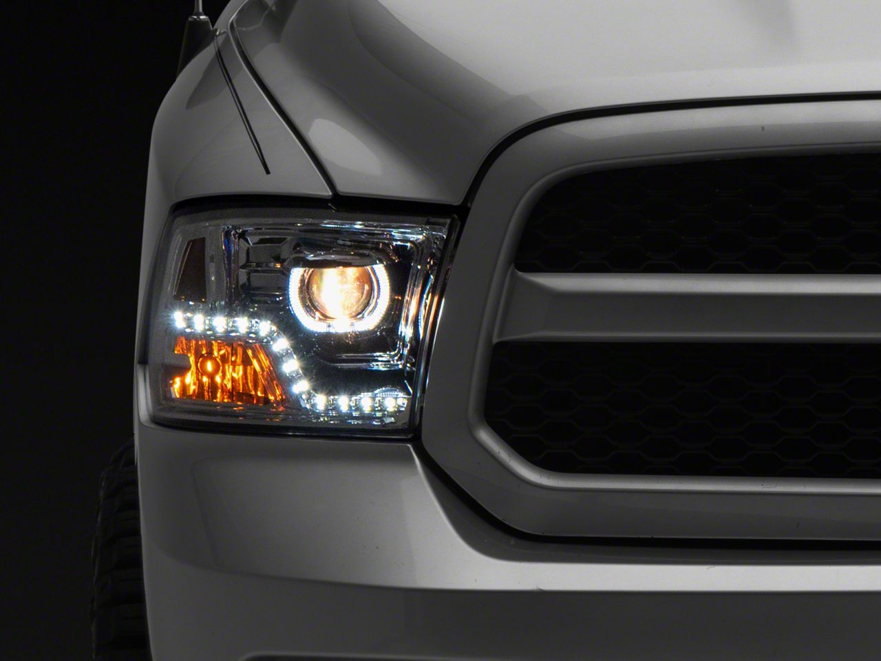 Stylish Design. Your RAM 1500 will look amazing once you have these LED Halo Projector Headlights; Chrome Housing; Clear Lens installed. These projector headlights have an aggressive, stylish look that will sure improve your RAM's look. The dual halo lights add a touch of class and will light up the road at night.