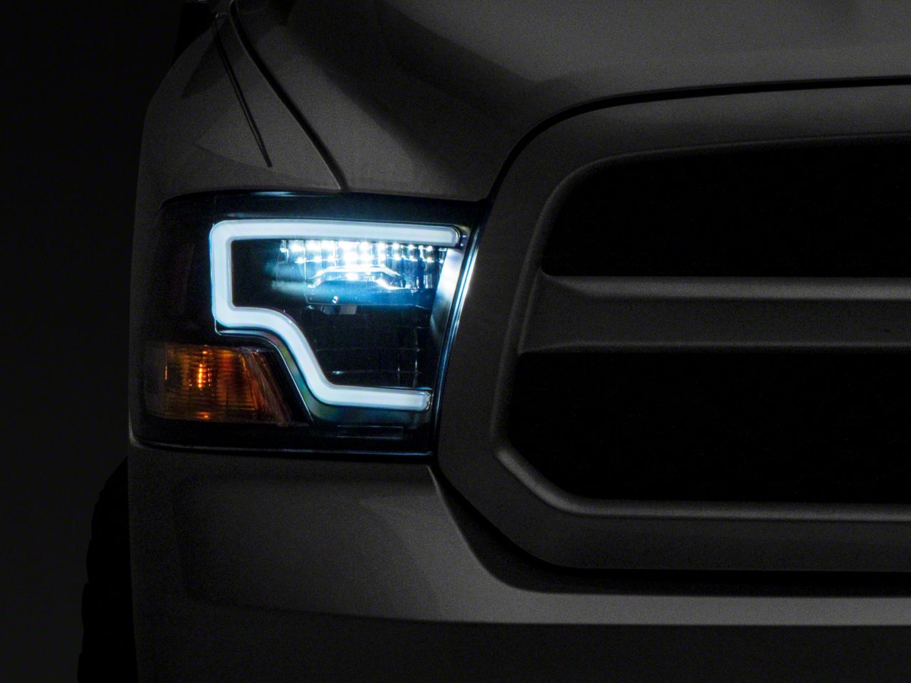 Projector Style Headlights. More than just an accessory, these LED Projector Headlights; Black Housing; Clear Lens are a stylish piece to accentuate your mean RAM 1500 and to add to the safety of your daily drive. Incorporating modern design with industry standard construction, these LED headlamps will make sure that no road ever gets too dark.