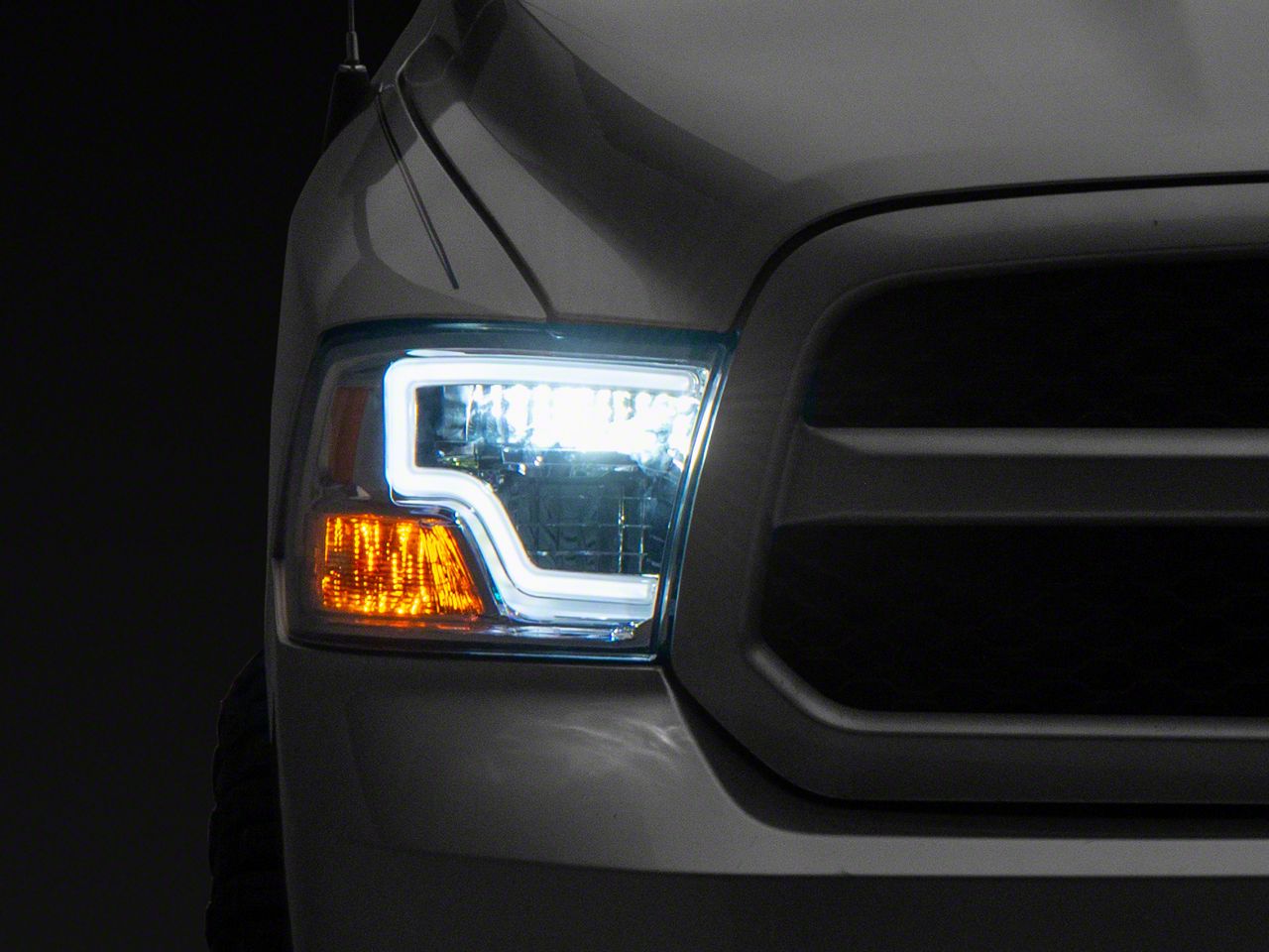 Projector Style Headlights. More than just an accessory, these LED Projector Headlights; Chrome Housing; Clear Lens are a stylish piece to accentuate your mean RAM 1500 and to add to the safety of your daily drive. Incorporating modern design with industry standard construction, these LED headlamps will make sure that no road ever gets too dark.