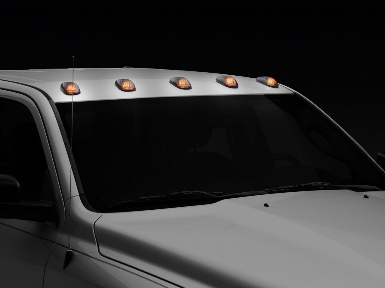 Vivid LED Lighting. These roof cab lights come in a 5-unit configuration, each equipped with nine high-quality LED bulbs. This design translates to vivid illumination, making your truck much more conspicuous when driving down the highway. Additionally, these bulbs create amber-colored light, seen through their smoked lenses, giving your truck an eye-catching look.