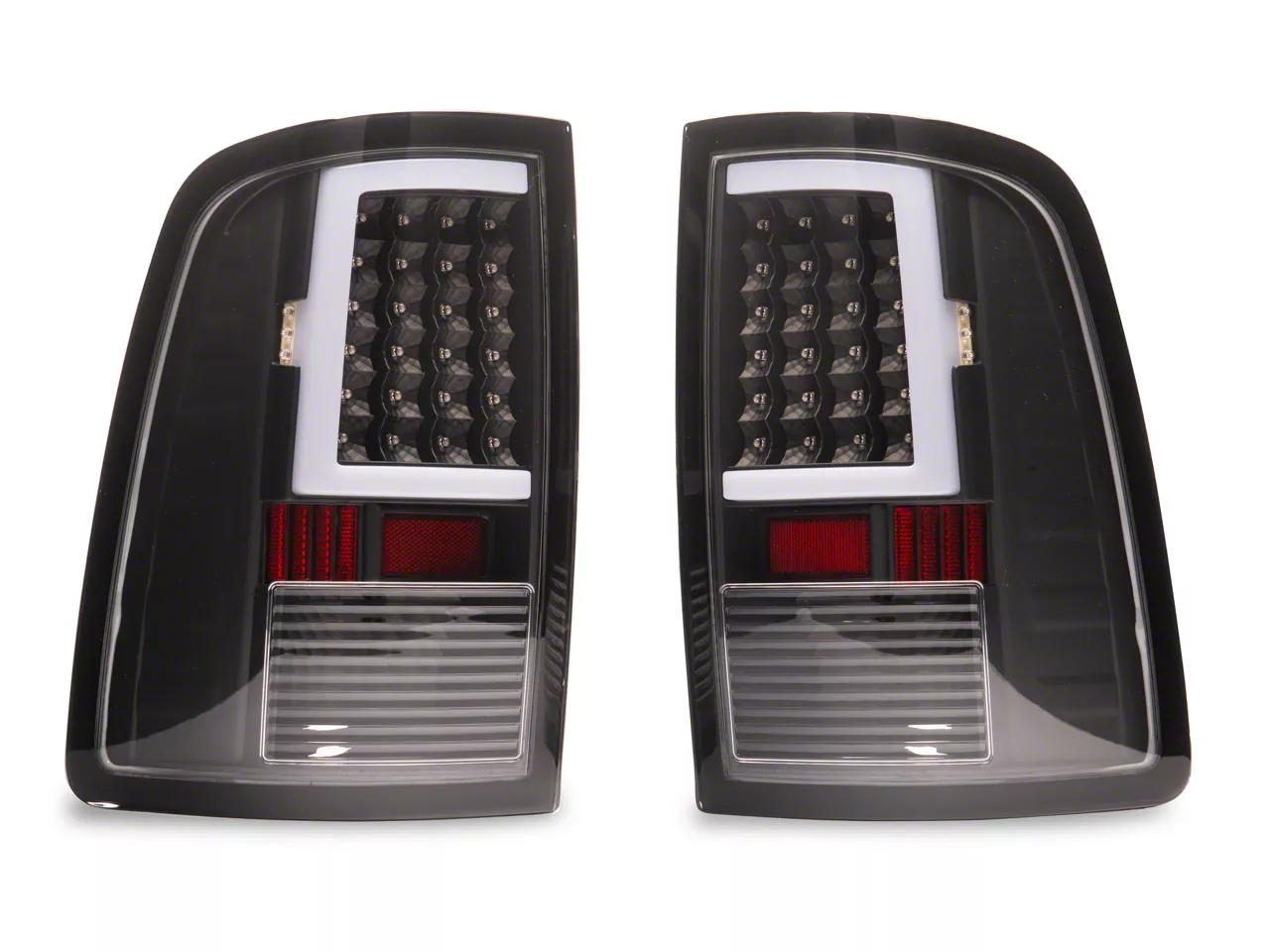 Enhanced Safety. These LED Tail Lights; Black will improve the safety situation around you and your RAM 1500. Clear, focused light will allow those behind you to know what's going on, but it will also drastically enhance the style of your truck.