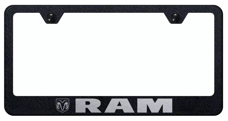 Impeccable Construction. The RAM Laser-Etched Stainless Steel License Plate Frame boasts a high-quality steel construction that won’t rust or corrode even after years of use. The frame won’t get damaged due to flying rocks, mud, or dust. It comes in a beautiful black color that won’t chip.