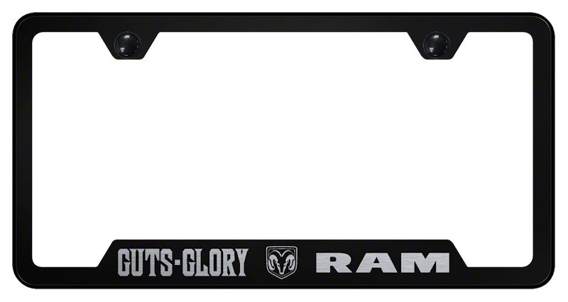 Application. The Guts, Glory, RAM Laser Etched Cut-Out License Plate Frame is a product with universal fitment with some adaptation needed.