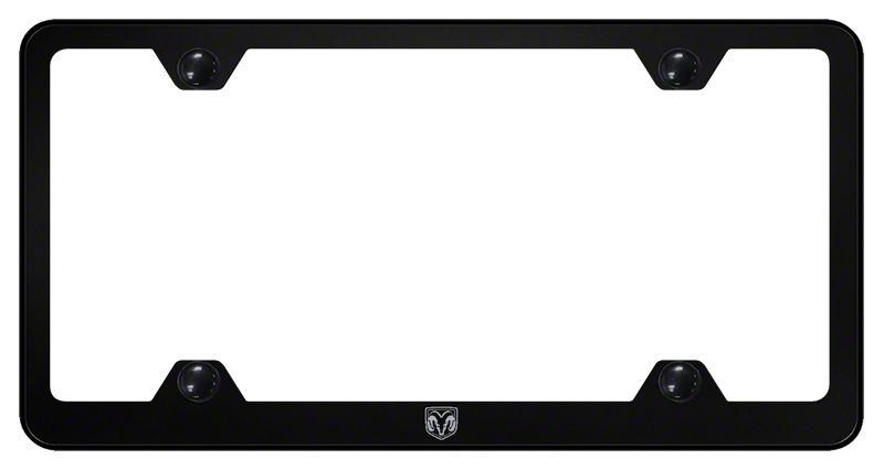 Your Personalization. This officially licensed RAM license plate frame is a quick and easy addition to your vehicle. Available in a black or mirror finish over 100% stainless steel, this RAM Head Laser Etched License Plate Frame is not a typical discount auto store frame. Instead, this License Plate Frame is Laser Etched with the RAM Head to add a detailed touch to your truck.
