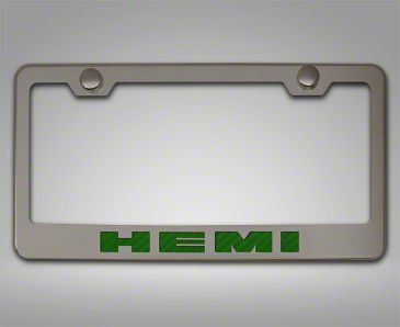 Description. Tell the slow poke you just passed what made that scary sound with our Custom License Plate Frame with "HEMI" Lettering. These custom tag frames are hand crafted from 304 stainless steel and feature a custom vinyl inlay that allows you to add your custom style to the piece.