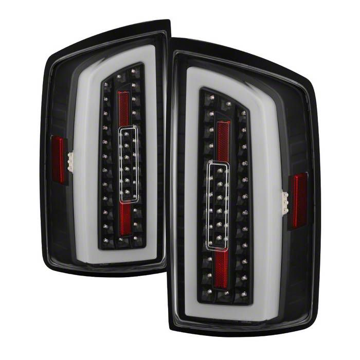 Light Bar LED Tail Lights. The Light Bar LED Tail Lights are designed for 2007-2008 RAM 1500 models, providing a stylish and functional upgrade for your vehicle's rear lighting. These tail lights feature a matte black finish housing and clear transparent lenses, offering a sleek and modern look. They are designed as direct replacements, making installation straightforward and ensuring a perfect fit.