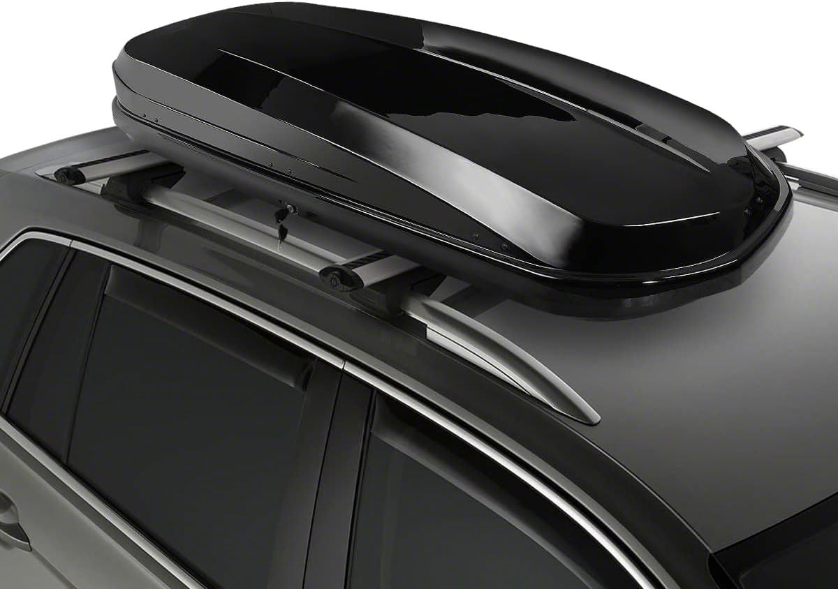 Construction and Appearance. Built from rugged, impact-resistant ABS plastic, this cargo box features a glossy black smooth finish for a sleek and durable look. The weather-resistant design shields contents from rain and debris, while the dual-side opening and 14-inch wide lid allow easy access. The lid stays open during loading and closes securely with the included key-lock system.