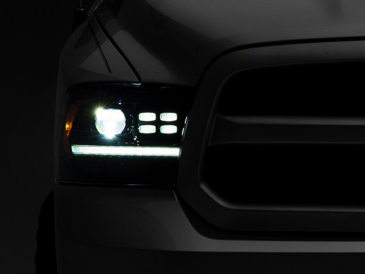 Enhanced Safety and Bolder Look. A simple way to bring out an appealingly bold style to your RAM 1500 is by installing this pair of LUXX-Series LED Projector Headlights; Alpha Black; Clear Lens. Featuring a fierce black face and dual projectors with unique quad-LED outer projectors, each headlight will give your truck a more aggressive look. These headlights are also designed to give your truck enhanced visibility for added safety.