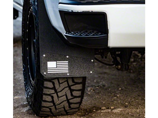 Stylish Military Homage. Stylize your strapping street beast with these Merica Mud Flaps. Constructed from tough-standard ABS plastic, these mud flaps not only provide coverage against mud and rubble but also feature an embossed logo of the US flag, elevating the looks of your vehicle and highlighting a more military aesthetic.