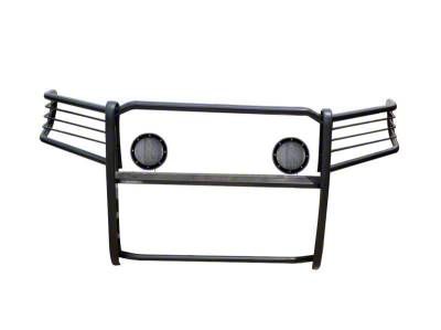 Enhanced Protection and Style. Elevate your vehicle's aesthetic and safety with the Modular Grille Guard with 5.30-Inch Black Round Flood LED Lights; Black. Tailored for a perfect fit from 2021-2024 models, this guard kit offers not only a rugged, commanding look but also unparalleled protection for off-roading adventures and city driving alike. The inclusion of removable front light guards allows for versatility, catering to both street and off-road requirements, while the integrated LED lights ensure enhanced visibility for all your journeys.