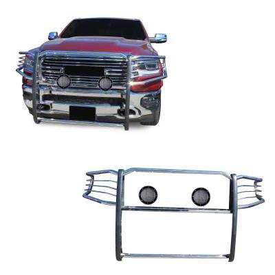Application. This Modular Grille Guard with 5.30-Inch Black Round Flood LED Lights in Stainless Steel fits all 2019-2024 RAM 1500 Models (Excluding EcoDiesel, Rebel, and TRX).