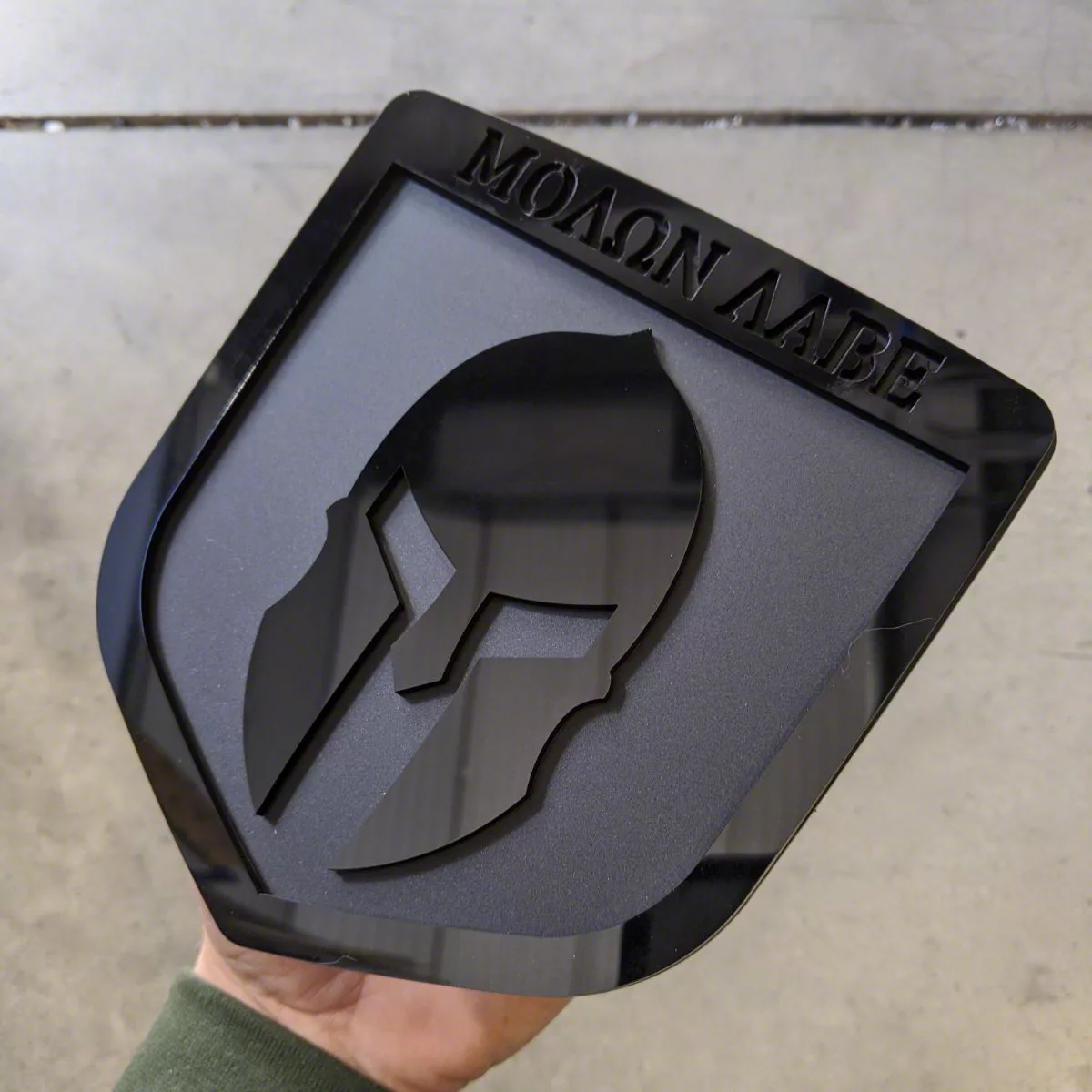 Enhanced Exterior Styling. Set your RAM apart with this premium Molon Labe Tailgate Badge, engineered to be installed directly in place of your RAM's factory tailgate badge for a subtle yet custom appearance. This sleek black badge is a stylish addition to any RAM, especially those with a rugged blacked-out theme. With this Molon Labe tailgate badge, your pickup will surely stand out amongst the rest.