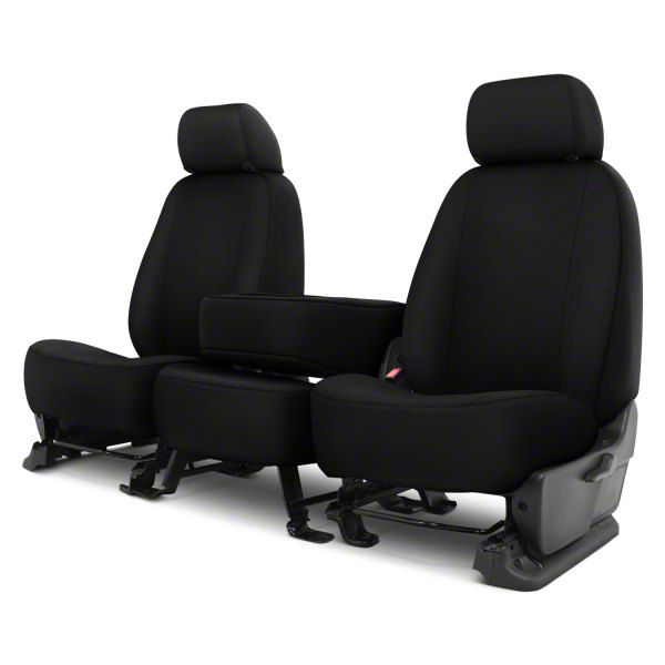 Construction and Appearance. Made from genuine neoprene fabric, these seat covers are both durable and long-lasting. The sleek black/black color complements any vehicle interior, while the waterproof nature adds an extra layer of resilience.