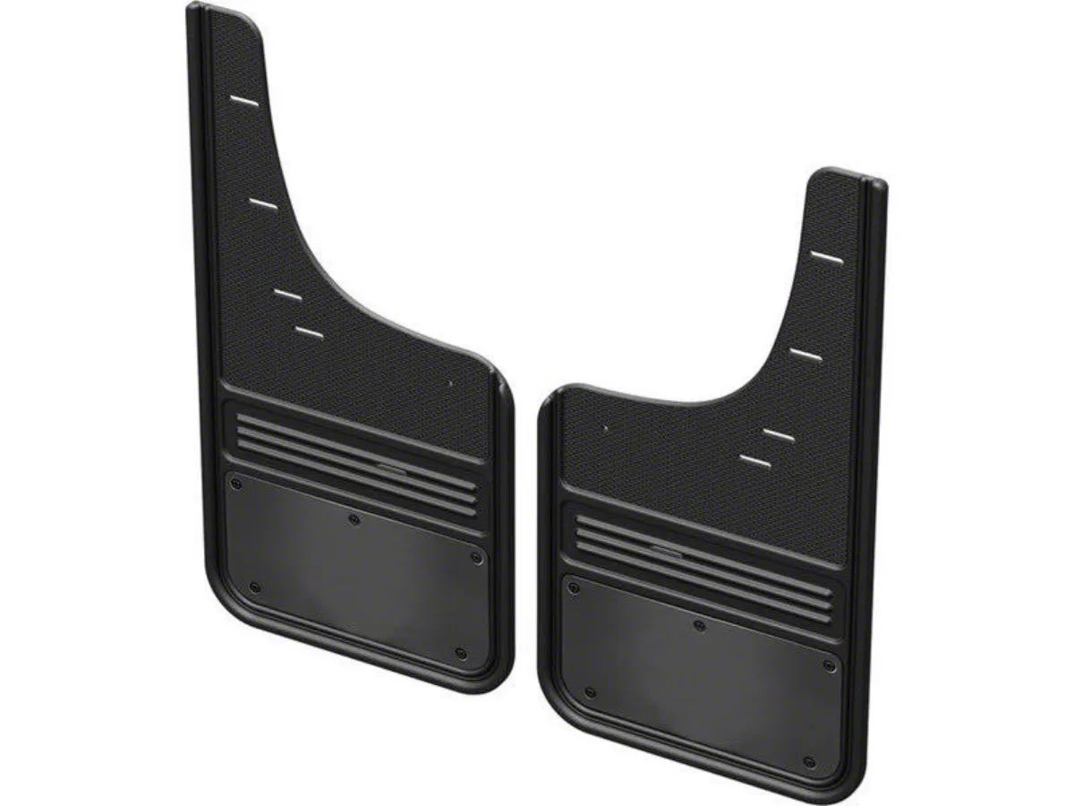 Rugged and Easy-to-Install Mud Flaps. These No-Drill Mud Flaps with Gunmetal Plate offer effective protection for the rear fenders, preventing damage from mud, rocks, and other road debris. With a stylish gunmetal plate, these mud flaps provide a custom, rugged look, perfect for enhancing both functionality and aesthetics.
