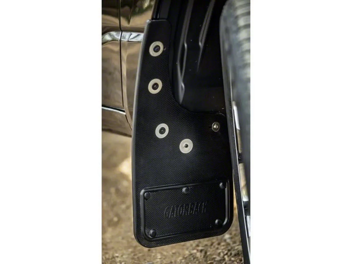 Rugged Styling. Guard your underside components and protect your hardware from damage with this No-Drill Mud Flaps with RAM Text Logo; Front for your RAM 1500. Made from strong composite with metal reinforcing, it offers impact protection from mud and rubble as well as minimizes messes on your side.
