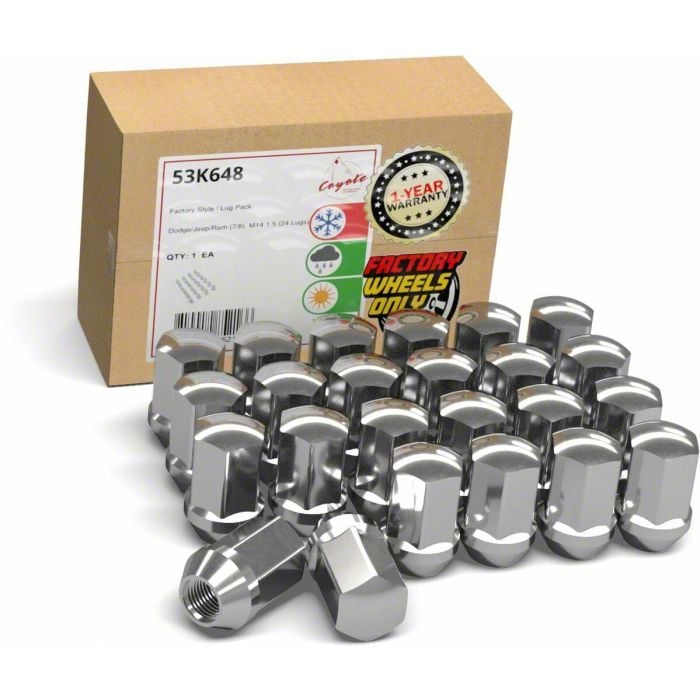Factory Fitment, Showroom Finish. Replace worn or corroded lug nuts with this OEM-Style Chrome Lug Nut Kit designed specifically for RAM 1500 models. Featuring the correct M14 x 1.5 thread pitch and seating profile, these lug nuts ensure safe and proper wheel fastening while restoring a fresh, polished appearance to your wheels.