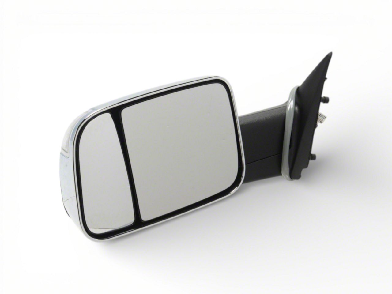 OEM Style Replacement Towing Mirror. Replace your 1500 RAM's cracked or broken towing mirror with a brand new OEM style replacement. This manual folding/telescoping, dual lens, towing mirror is designed to replace the power-operated, heated passenger side mirror found on 2009-2012 RAM 1500 models equipped with mirror mounted turn signal lights, puddle lamps, and Memory Function, but without ambient temperature sensor.