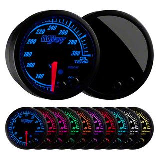 This 2 1/16" (52mm) oil temperature gauge outperforms competition with features that include a peak recall function, programmable high and low warning functions, stepper motor technology, 10 color through dial LED lighting, as well as a self-calibration mode at startup, an illuminated red needle, and a low profile magnified tinted lens. The adjustable high and low warning functions will alert you visually or with an optional audible tone, ensuring your vehicle’s oil temp is not running too hot, and the peak recall feature gives you an instant assessment of your vehicle. The included stepper motor technology ensures all needle movement is remarkably smooth and all gauge readings exceptionally accurate. GlowShift’s 10 color through dial lighting lets you match your stock gauges or add a custom look to interior of your vehicle, and with the color recall feature you won’t have to worry about resetting the gauge to your preferred color every time you turn your vehicle on. This oil temperature gauge will dim 30% when connected to your factory headlight switch, making it much easier to read when driving at night.