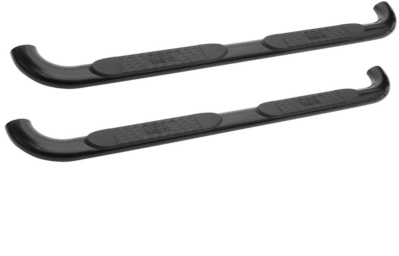 Stylish Functionality. Westin offers these Platinum 4-Inch Oval Black Side Step Bars as sturdy platforms to prevent the unwanted slip-and-falls when entering and exiting your RAM 1500. Each assembly offers comfortable and secure access into the cab while keeping your doors and side panels protected from trail debris and dings. Moreover, it comes in an all-black look that adds an aggressive charm to your truck’s tough exterior.